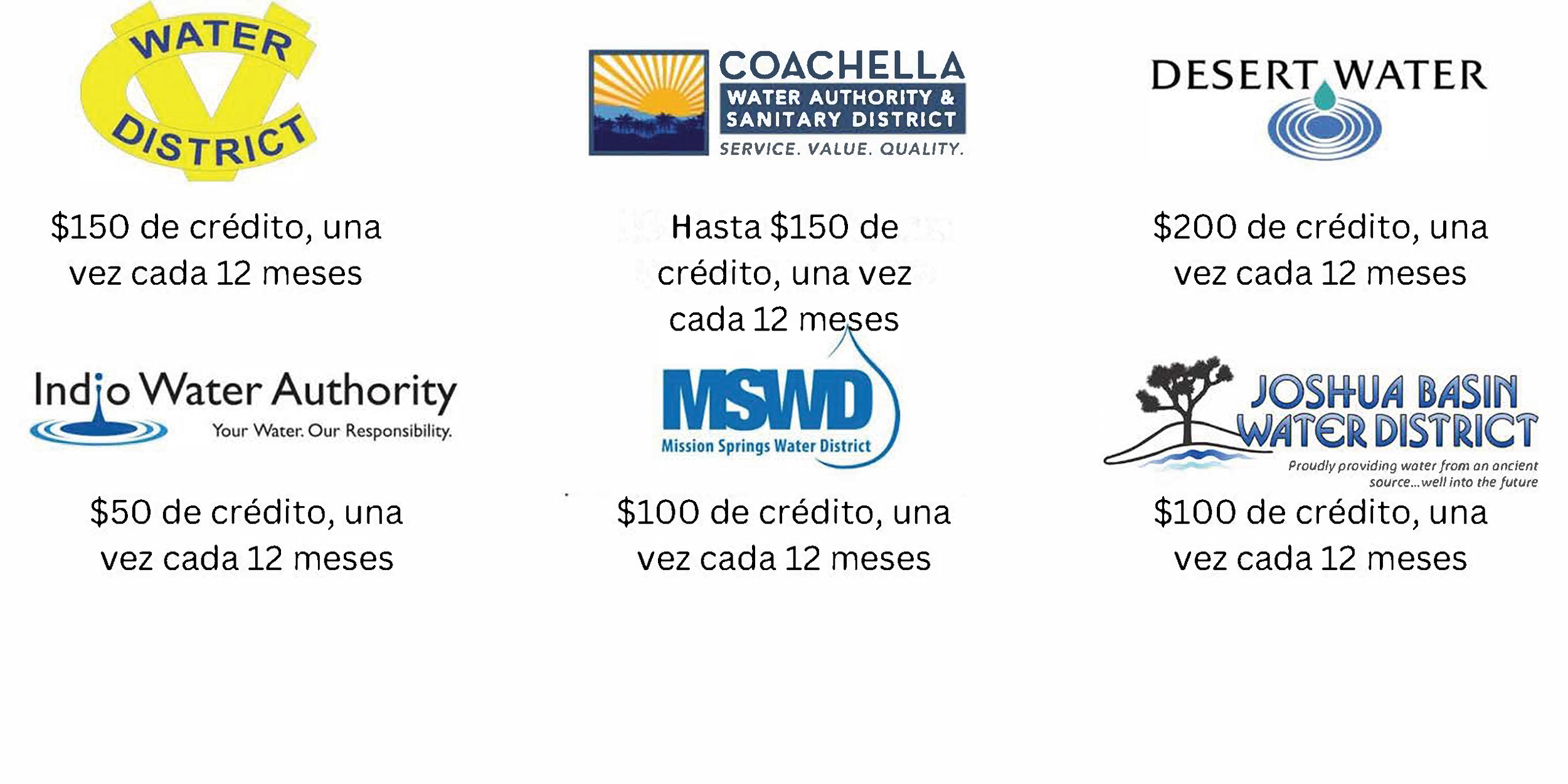 El programa Help2Others (H20) ayuda a los clientes residenciales elegibles a evitar cortes del servicio de agua debido a la falta de pago de los montos adeudados a su departamento de agua. Varios distritos de agua en todo el condado de Riverside ofrecen hasta $215 en créditos; el monto y la frecuencia de la solicitud varían según la agencia. Consulte la lista de agencias de agua a continuación para obtener información sobre sus beneficios potenciales.